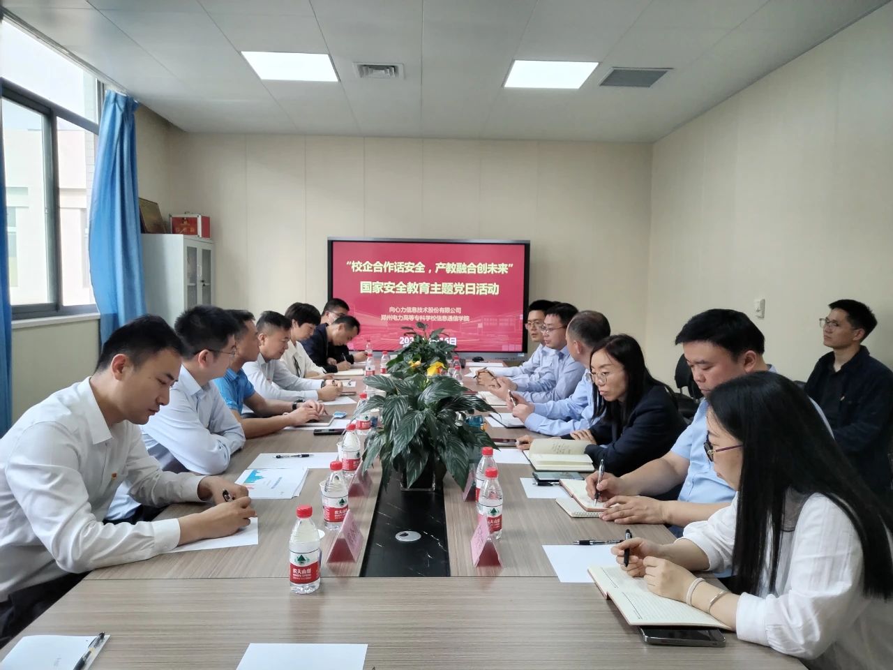 4月16日,在第9个全民国家安全教育日来临之际,为了进一步树立总体国家安全观,增强支部党员的国家安全意识、保密意识和党性修养,同时加强了校企的互相了解和紧密合作,郑州电力高等专科学校信息通信学院教工党支部与澳门投注平台官网党支部共同举办了“校企合作话安全,产教融合创未来”国家安全教育主题党日活动。郑州电力高等专科学校副校长黄鹏,信通学院院长冯明卿,澳门投注平台官网党支部书记、董事长赵国庆,政企事业部总经理谢华健等出席了活动。