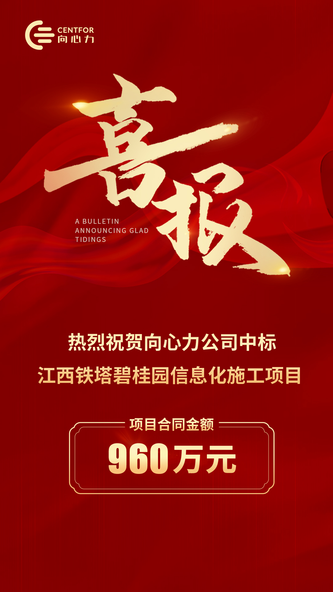 热烈庆祝向心力公司中标中国铁塔江西省分公司2023年碧桂园信息化施工项目,合同总额960万。